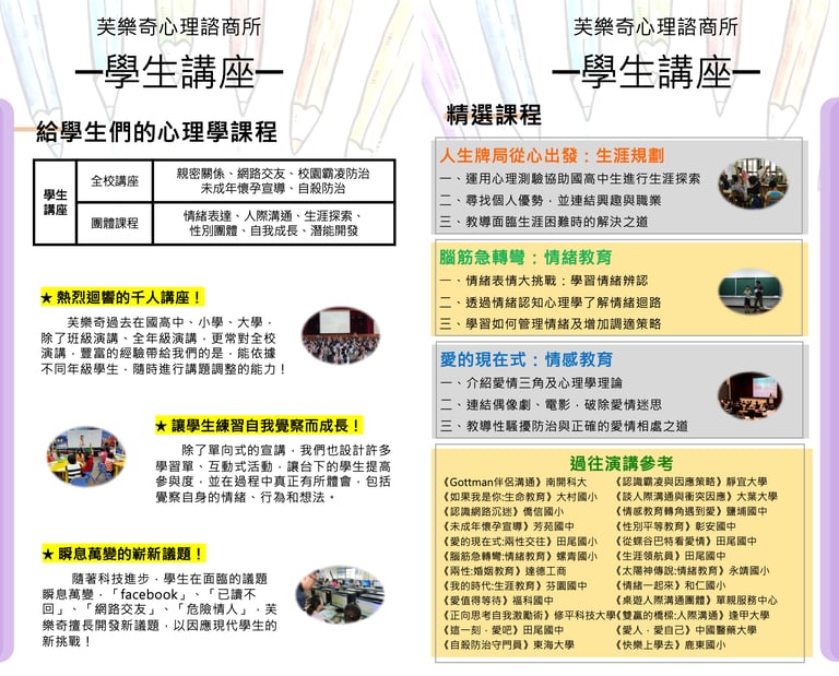 芙樂奇心理成長心理諮商所(中市衛心理諮商 字第XY03290025號)